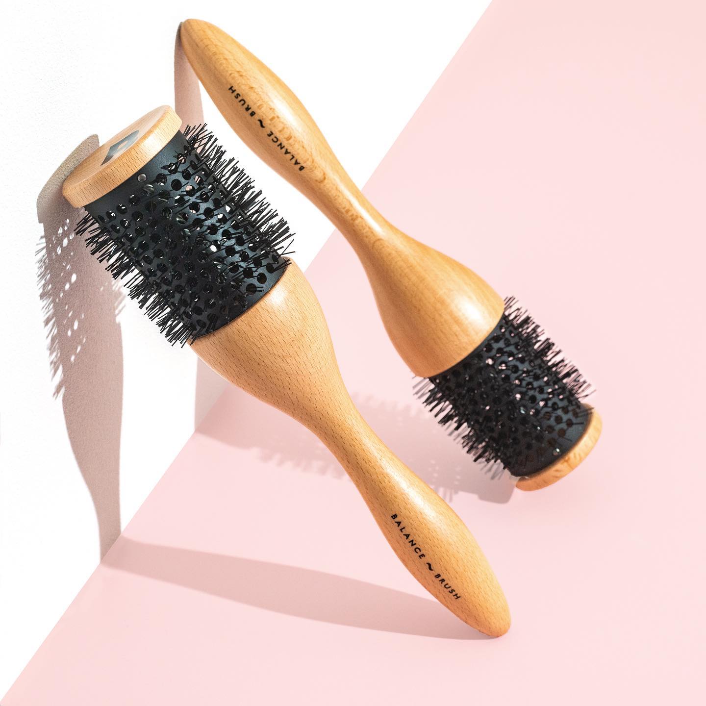 The Balance Brush has a patented COMPACT barrel. This allows you to concentrate on precise sections of hair when blow drying. Hugging the contours of the head where larger, more bulky barrels will get in the way.